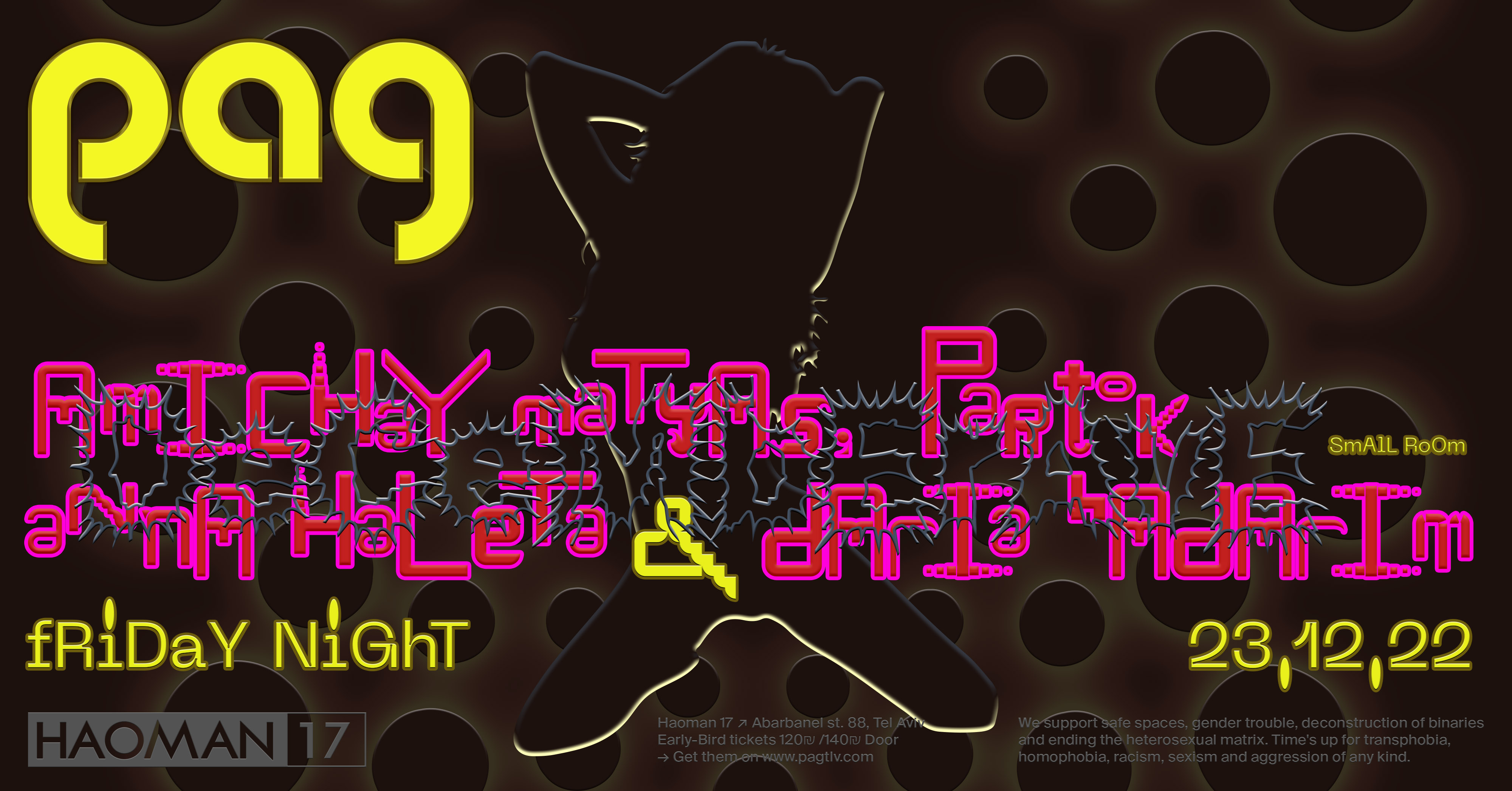 Friday 23rd December with Amichay Matyas, Partok, Anna Haleta & Daria Hadarim at Haoman 17 Tel Aviv.